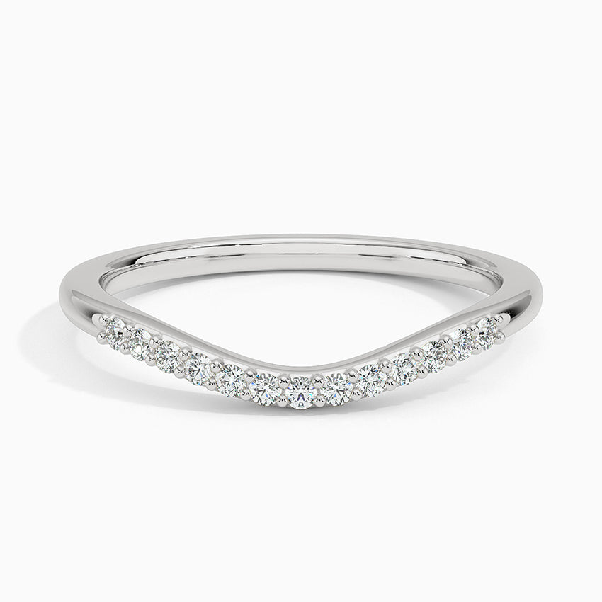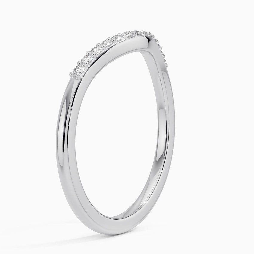 This curved wedding band shines with dazzling diamonds, elegantly contoured to harmonize with a variety of engagement ring designs.