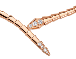 Serpenti Viper 18 kt yellow gold necklace set with pavé diamonds on the head and tail