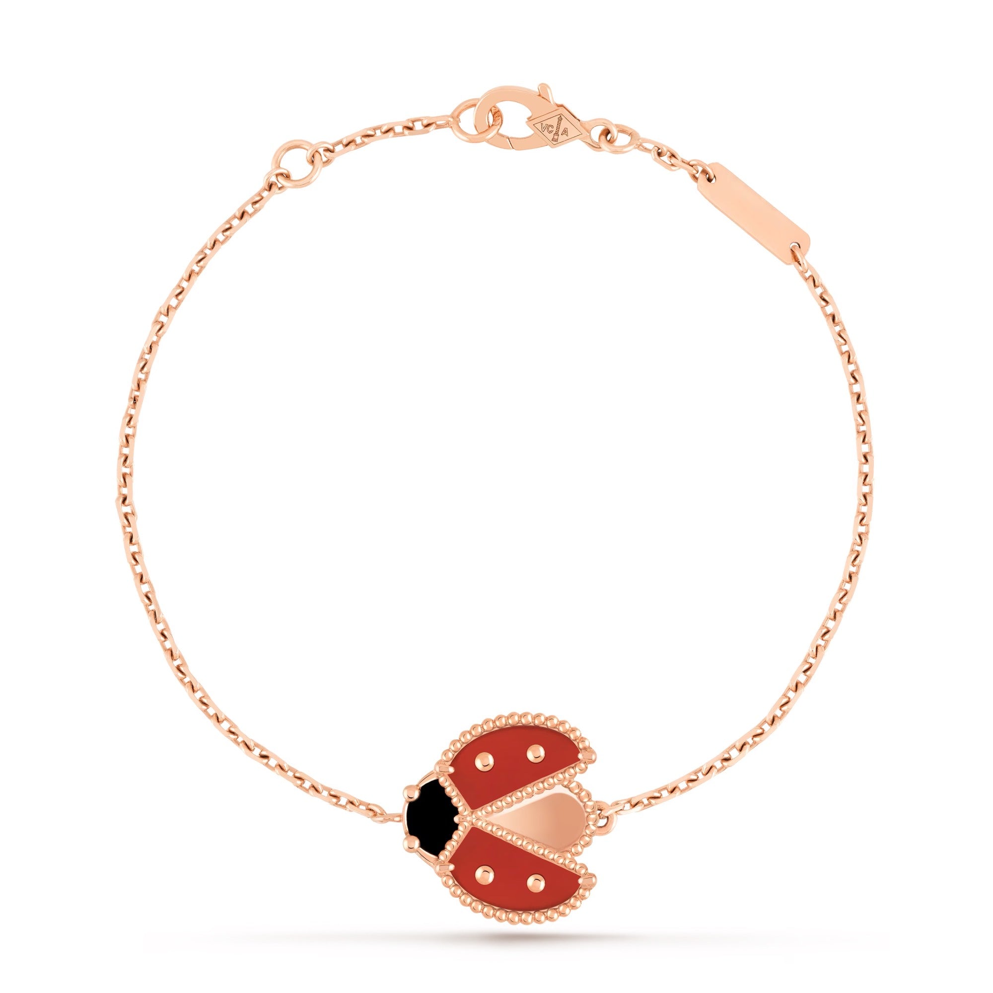 Lucky Spring bracelet, open wings ladybug, 18K rose gold, onyx, carnelian.