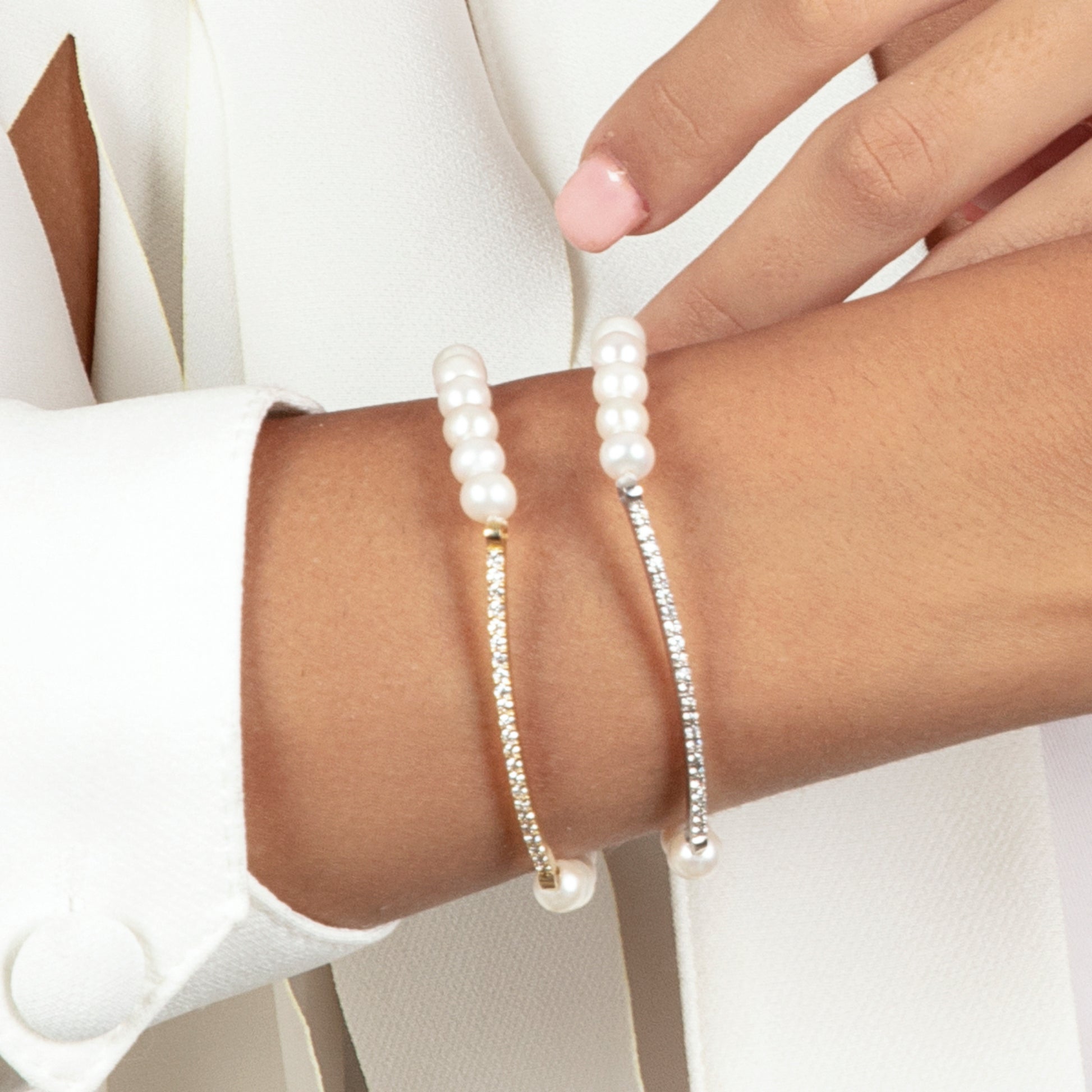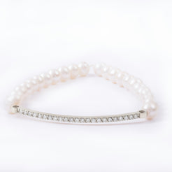 Our Diamond Pearl Flexible Bracelet – a classic blend of natural pearls and diamonds for timeless elegance. The elastic design ensures comfort, making it an effortlessly chic piece for any occasion.