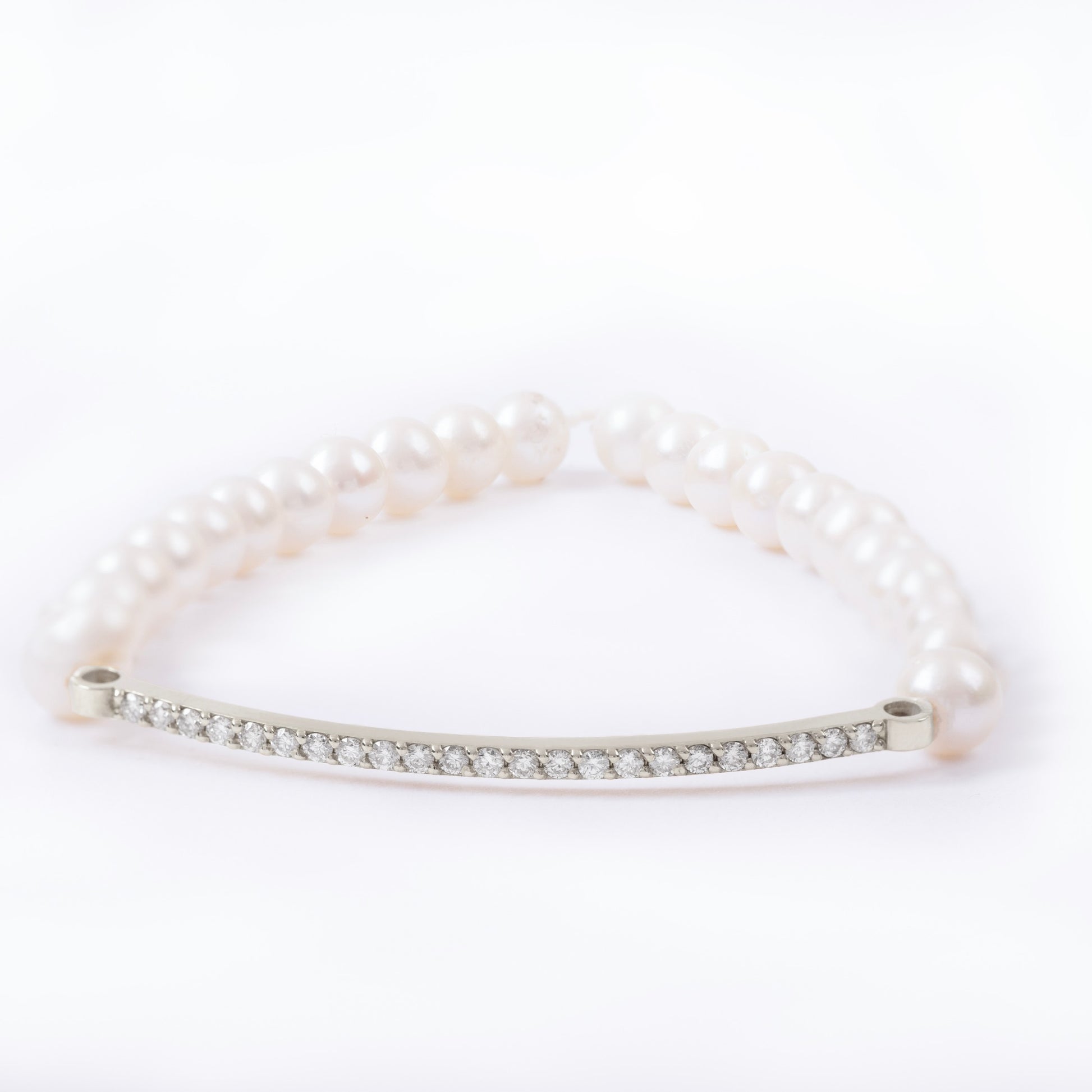 Our Diamond Pearl Flexible Bracelet – a classic blend of natural pearls and diamonds for timeless elegance. The elas...