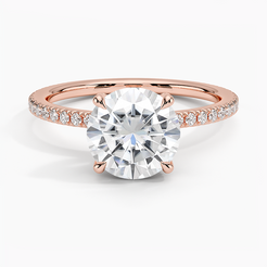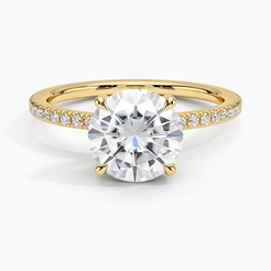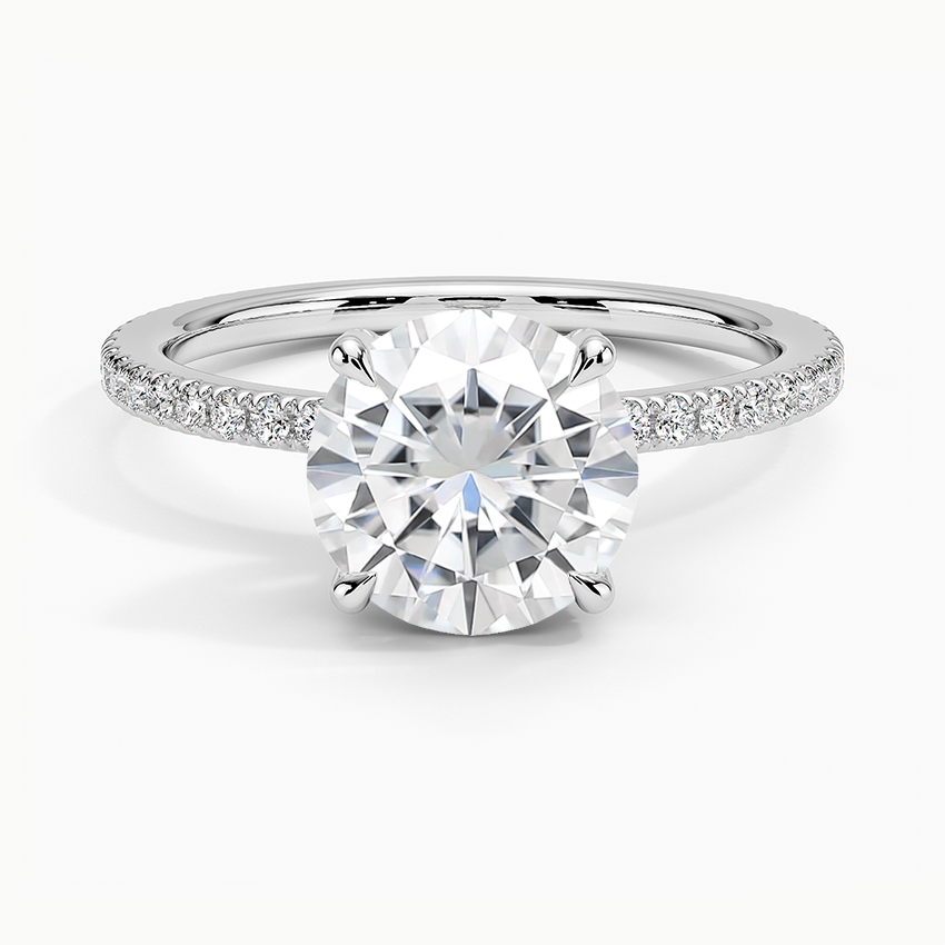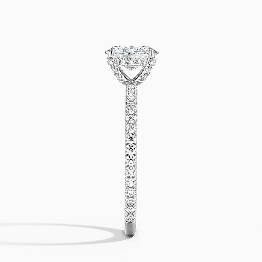 This refined diamond band boasts a raised gallery, ensuring a seamless fit with any wedding band for a flawless ensemble. The slender band enhances the ring's timeless and sophisticated appearance, adding to its sleek and classic allure.