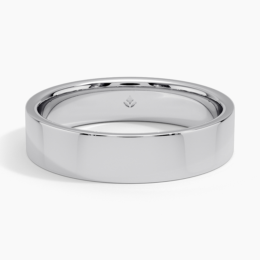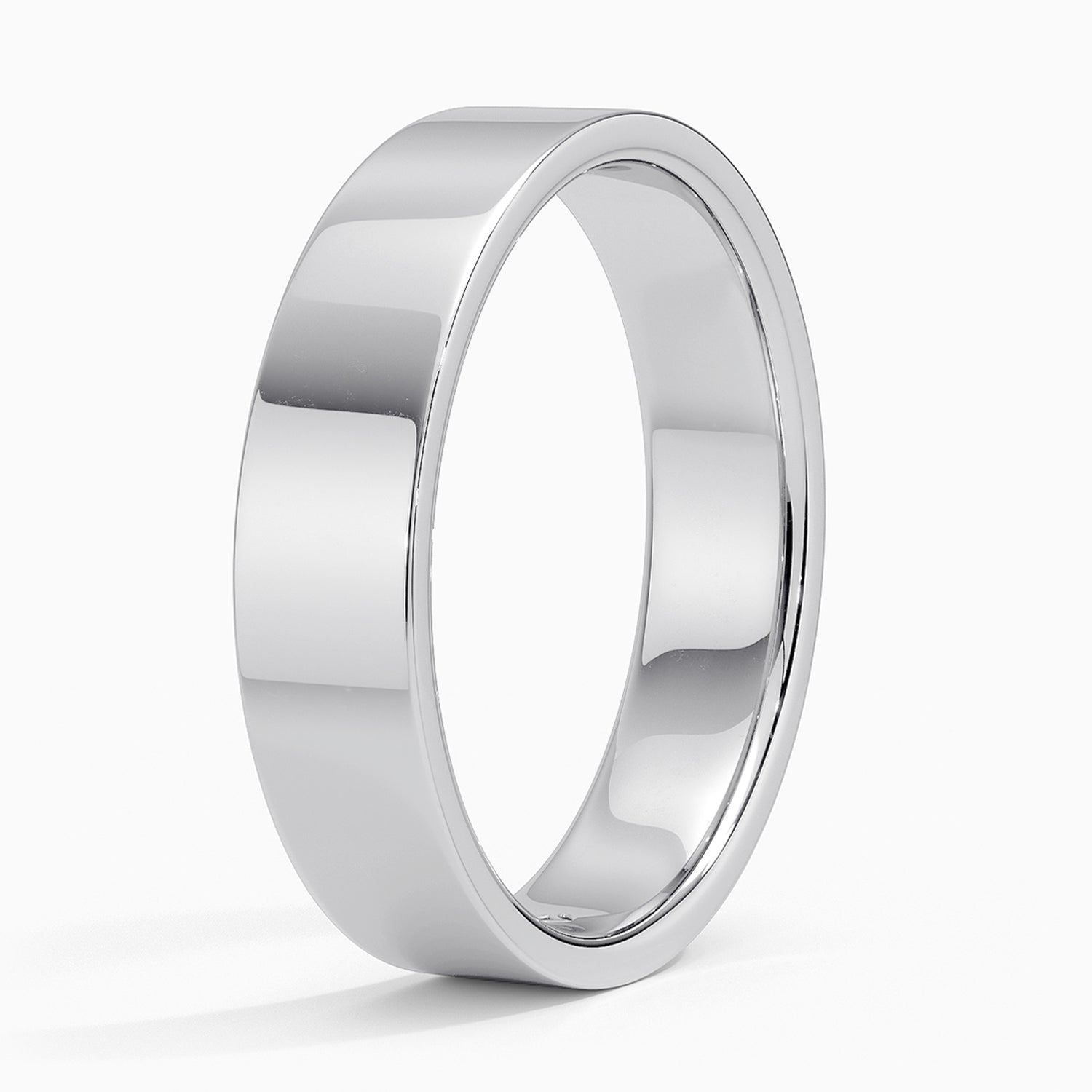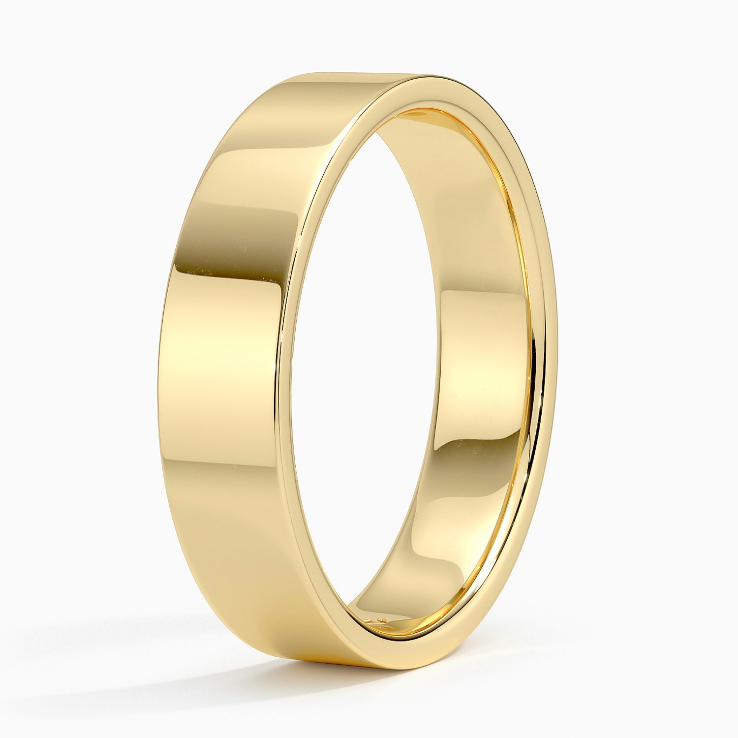 Discover elegance with our sleek 5mm wedding band, boasting smooth edges and a subtle, low-profile shape. Enhanced comfort is ensured with its rounded interior edge.