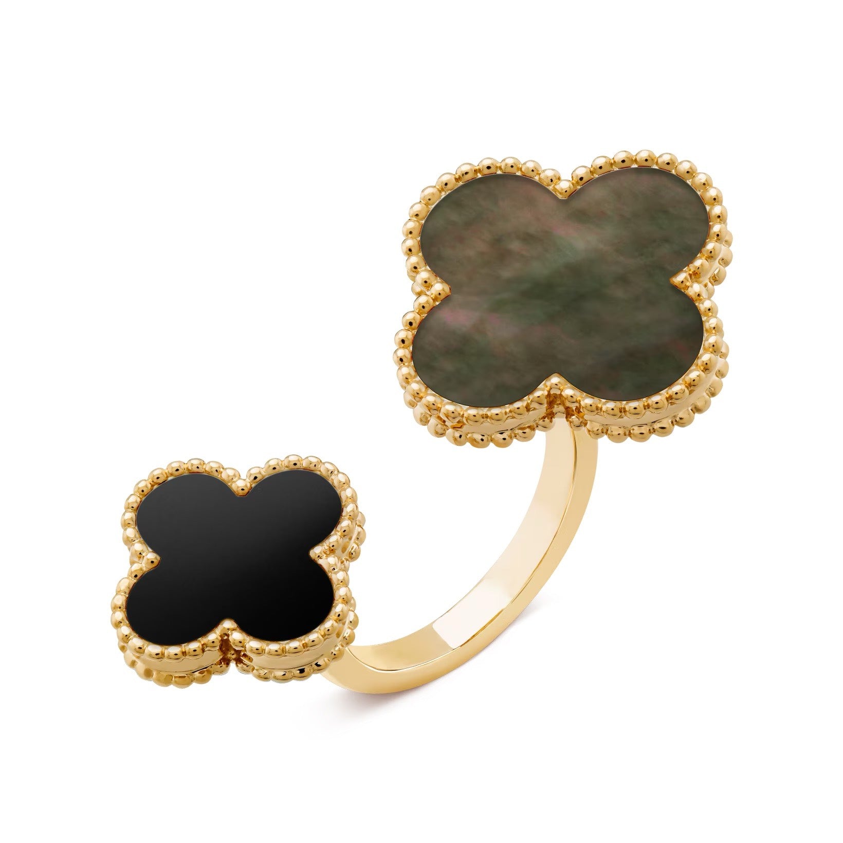 Magic Alhambra Between the Finger ring, 18K yellow gold, gray mother-of-pearl, onyx.