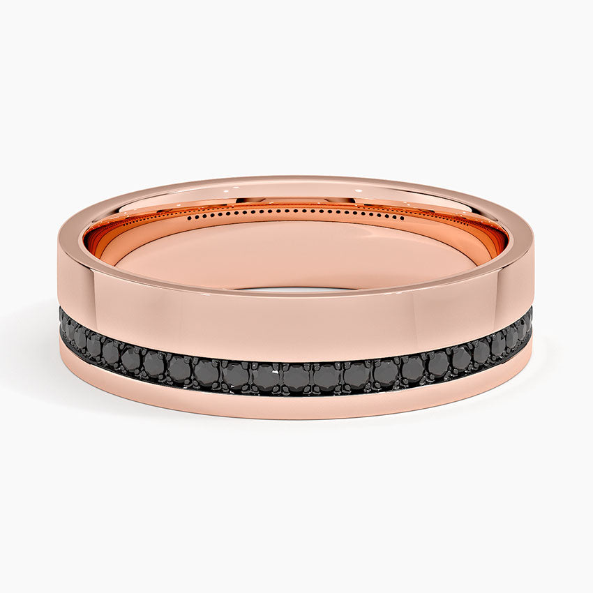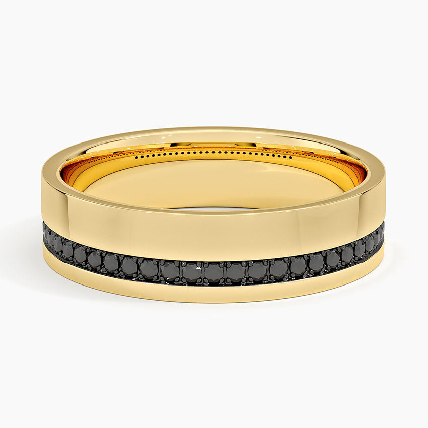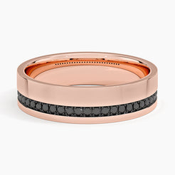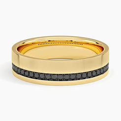 Introducing our contemporary ring boasting an asymmetrical groove adorned with black diamonds, extending halfway around the polished band. Crafted with black rhodium prongs to cradle these stunning gems, while the softened inner edge ensures heightened comfort.