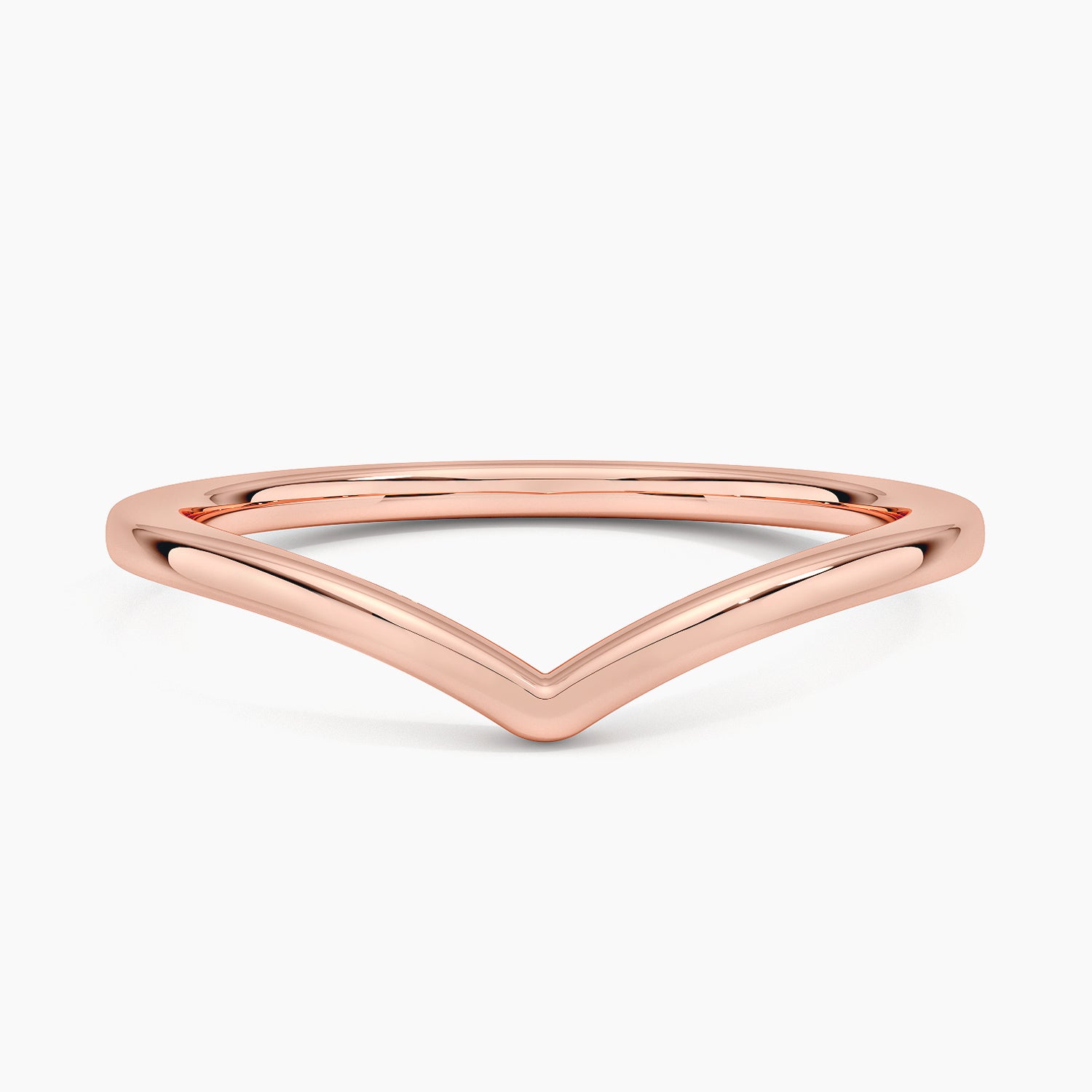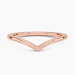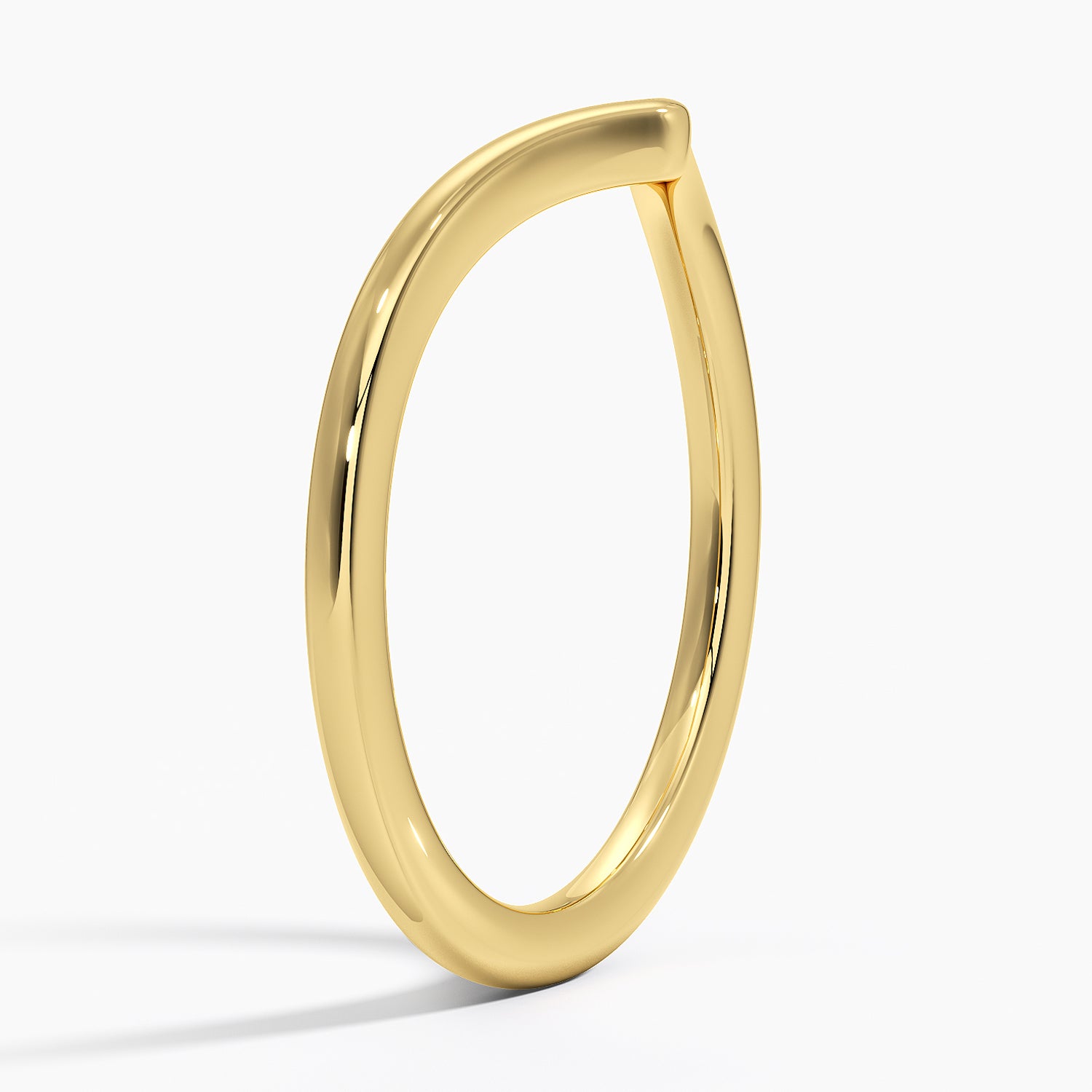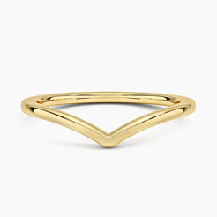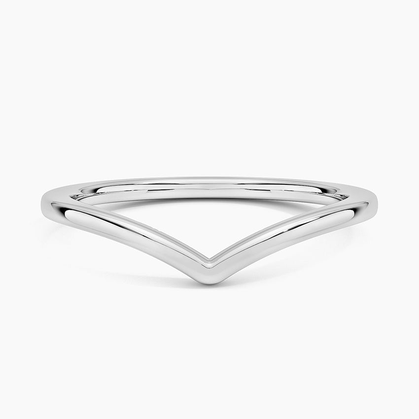 A sleek ribbon of fine metal gracefully flows along the finger, forming a curved chevron silhouette. This chic ring stands out beautifully on its own or adds an elegant touch when paired with an engagement ring.