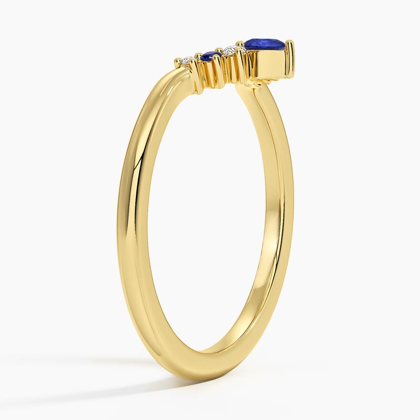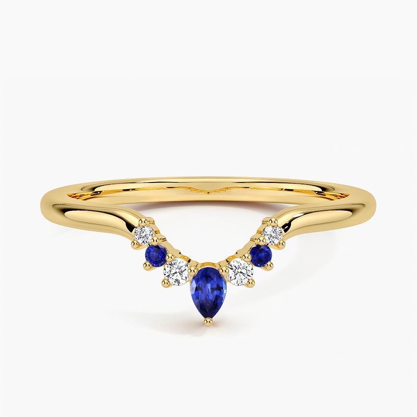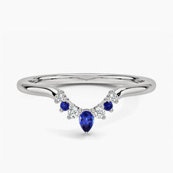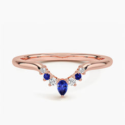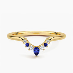 Crafted to perfection, this sleek crescent-shaped ring brings together sparkling diamonds and sapphires, meeting at a striking focal point. Versatile in design, it's ideal for complementing an engagement ring, stacking with other bands, or making a statement on its own.