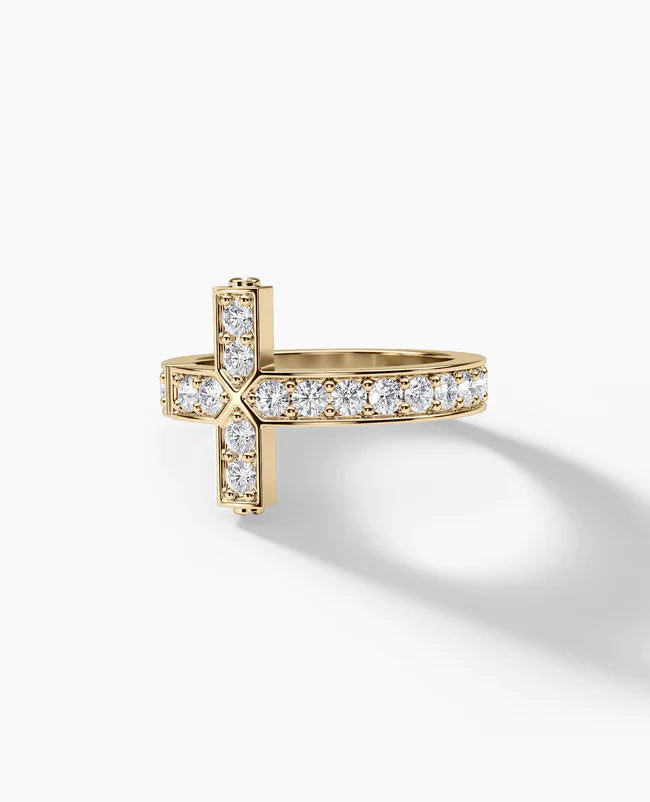 Introducing our Cross Diamond Gold Ring – an exquisite fusion of faith and elegance. Crafted with precision in lustrous gold and adorned with natural sparkling diamonds, this ring is a testament to timeless style and enduring devotion. and both fits men and woman.