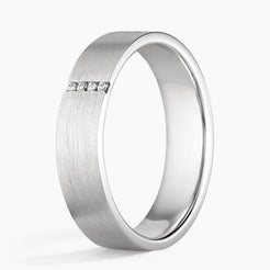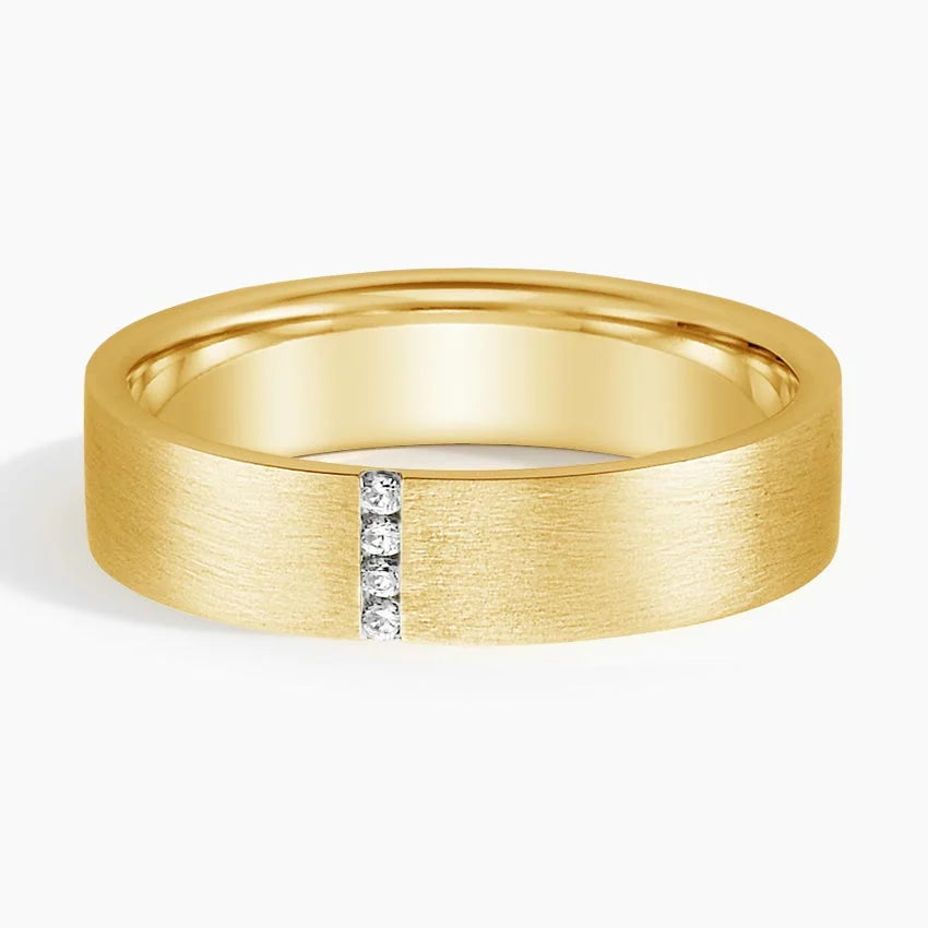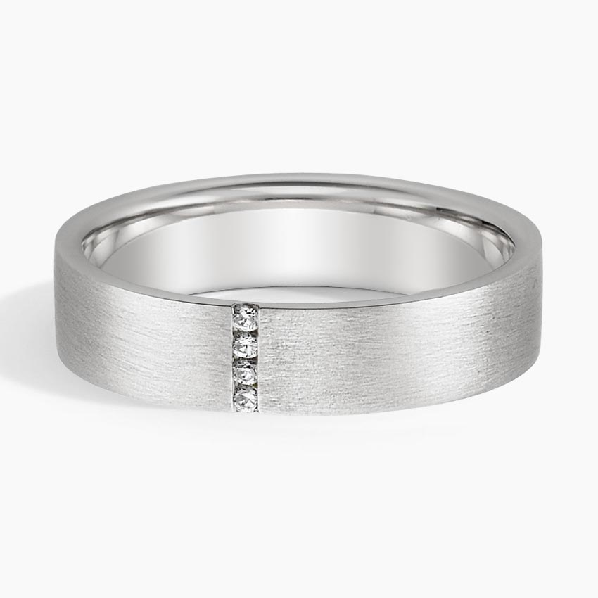 This contemporary band showcases a slender vertical line of diamonds set against a sophisticated matte brushed texture, delivering a chic aesthetic. Crafted with a gently softened inner edge, it ensures enhanced comfort for wear.