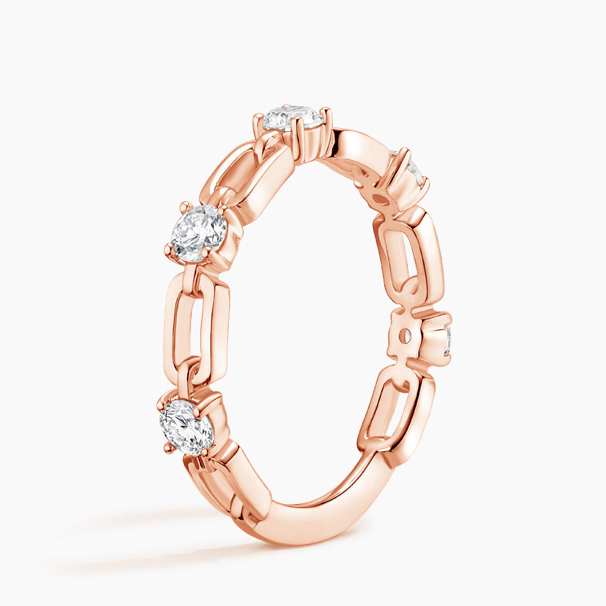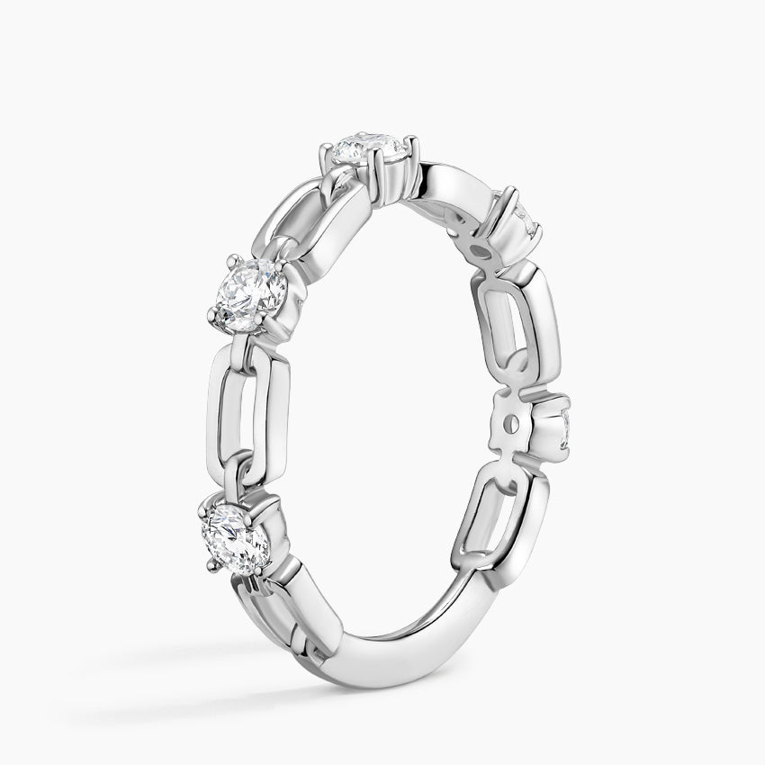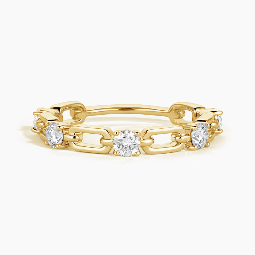 Experience a modern twist with this chain ring, boasting paperclip-inspired links adorned with sparkling round diamonds, resulting in a dazzling and eye-catching design.