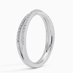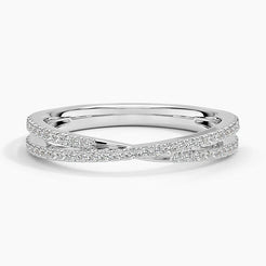 In this captivating ring, two delicate bands adorned with shimmering scalloped pavé diamonds elegantly intertwine, creating a mesmerizing display of brilliance.