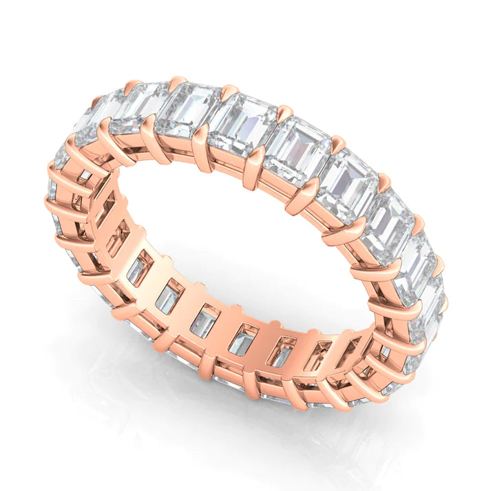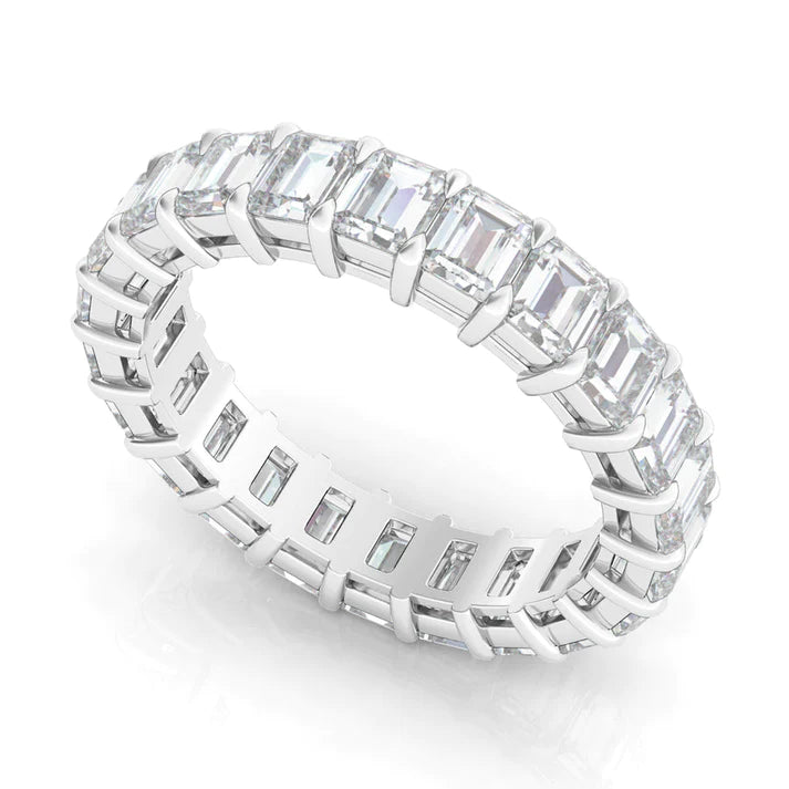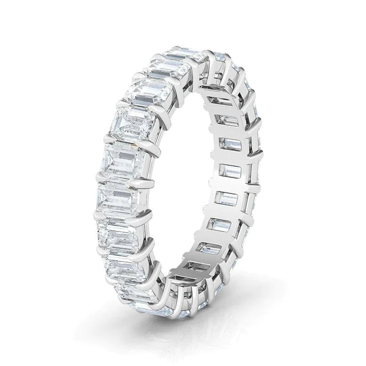 Introducing our Emerald Cut Lab Diamond Eternity Band – a stunning testament to timeless beauty and ethical elegance. Expertly crafted with precision, this eternity band features a continuous row of mesmerizing emerald-cut lab-created diamonds, creating a sophisticated and chic design.