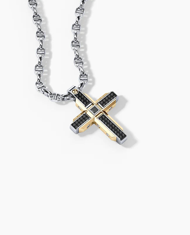 Introducing our Cross Pendant in Gold with 0.60ct Black Diamonds – a striking symbol of faith embellished with bold ...