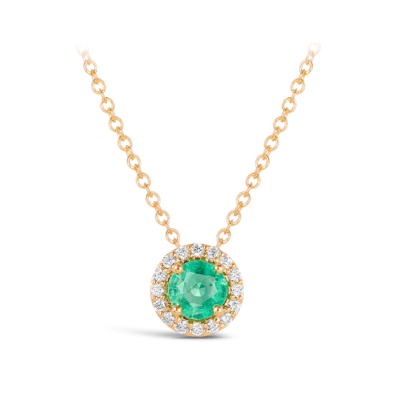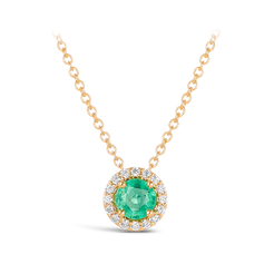 Introducing our Halo Emerald and Diamond Pendant – a captivating fusion of rich green allure and timeless sparkle. This exquisite pendant features a vibrant emerald encircled by a halo of dazzling diamonds, creating a statement piece that exudes sophistication and natural beauty.