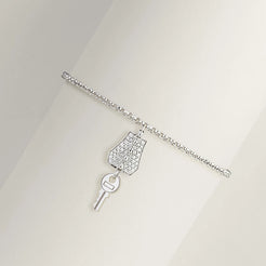 Interior circumference: 6.89" | Key motif size: 0.46" x 0.22" | Bell motif size: 0.43" x 0.37" | 104 diamonds | Total carat weight: 0.53 ct