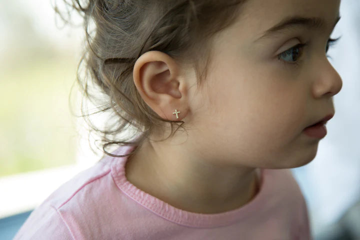 Introducing Our Kids Diamond Pave Cross Earrings – a touch of elegance for your little one's ears. These exquisite earrings feature a delicate cross design adorned with dazzling diamond pave, creating a timeless and sophisticated look.