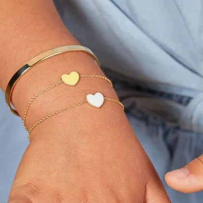Introducing our Kids Heart Enamel Bracelet – a whimsical and colorful bracelet crafted with care for the little ones who bring joy to your life. This bracelet features adorable heart-shaped charm adorned with vibrant enamel, adding a playful colorful touch to their wrist.