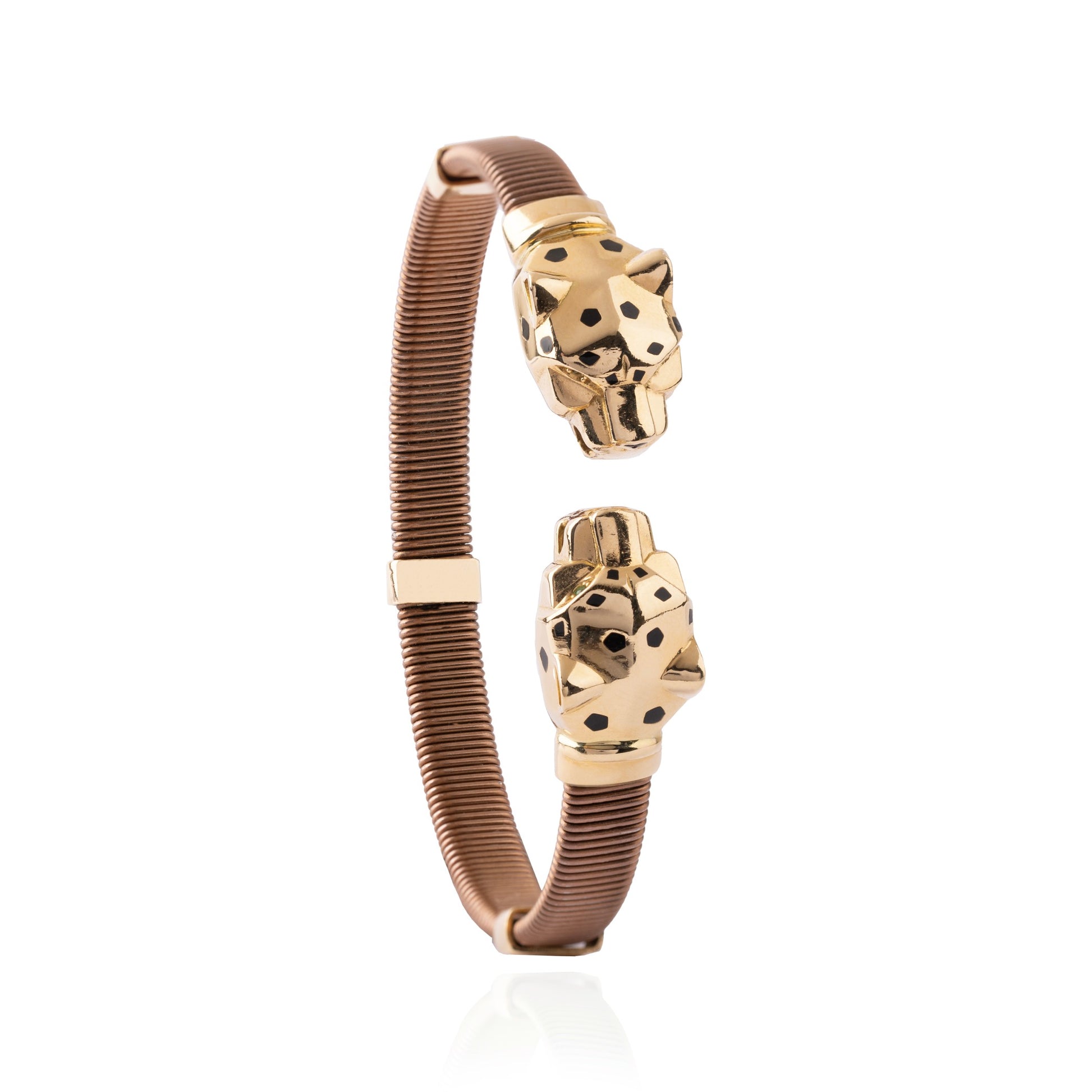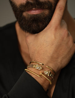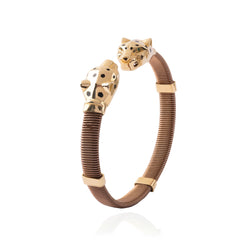 Our Leopard 18K Gold Men's Bangle with Stainless Band – a sleek and bold piece for a touch of modern masculinity. the combination of materials adds durability while exuding a modern and rugged charm. Upgrade your style effortlessly with this statement bangle.