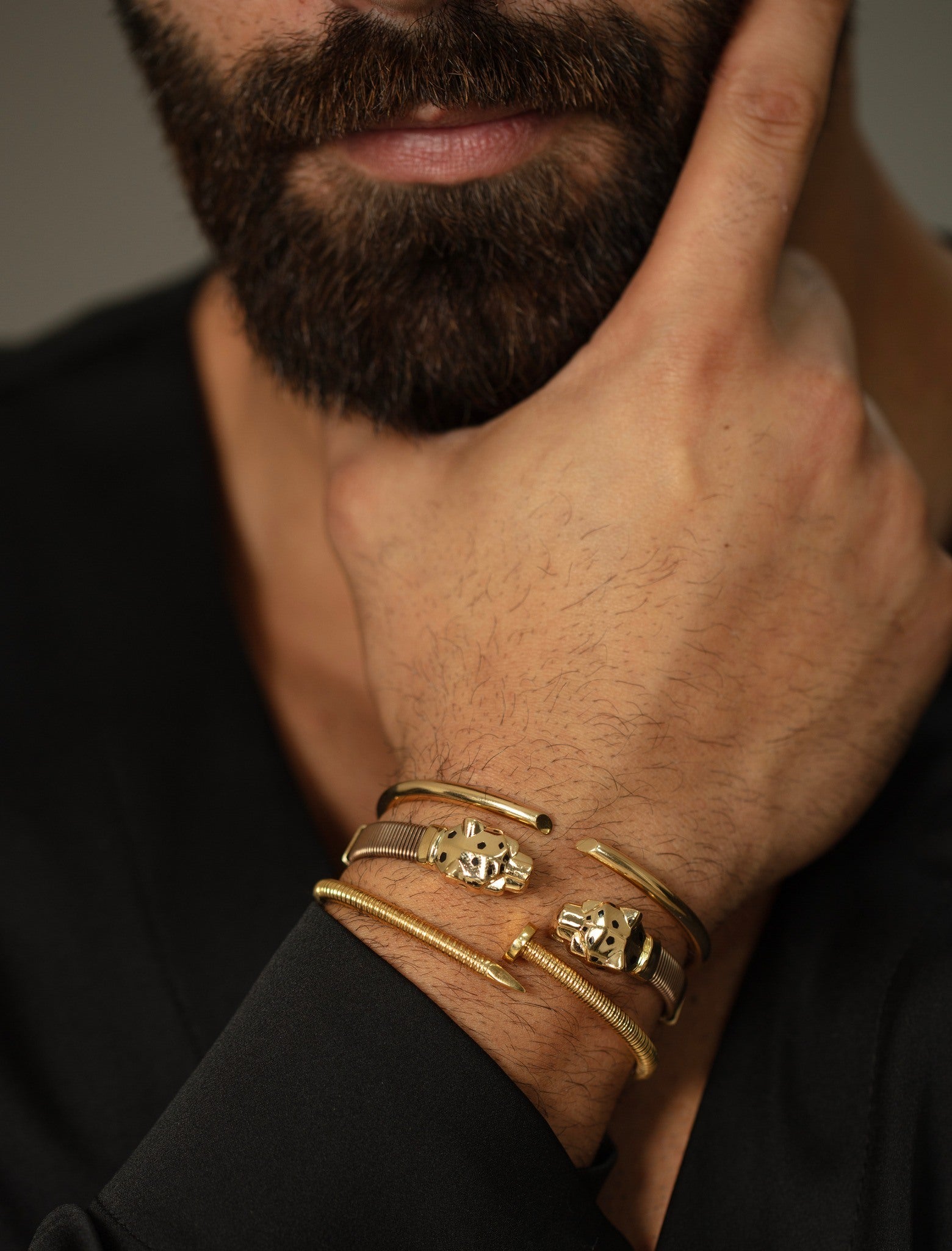 Our Leopard 18K Gold Men's Bangle with Stainless Band – a sleek and bold piece for a touch of modern masculinity. the...