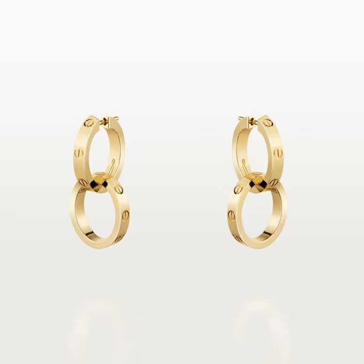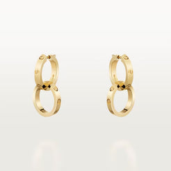LOVE earrings, 18K yellow gold (750/1000). Removable bottom hoops. Width: 3.3 mm.