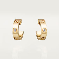 LOVE earrings, yellow gold 750/1000, each set with 1 brilliant-cut diamond totaling 0.15 carats. Width: 5.7 mm.