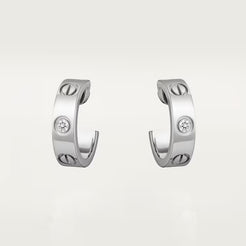 Love earrings, white gold 750/1000, each set with 1 brilliant-cut diamond totaling 0.15 carats. Width: 5.7 mm.
