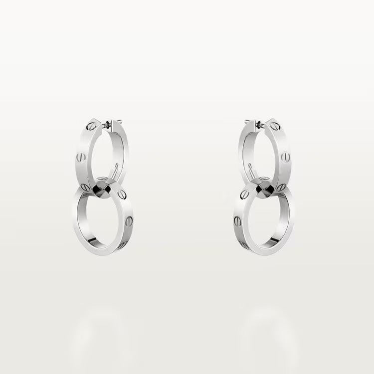 LOVE earrings, 18K white gold (750/1000). Removable bottom hoops. Width: 3.3 mm.