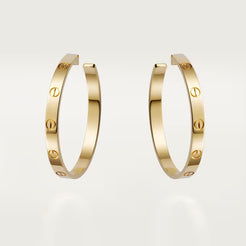 LOVE earrings, yellow gold 750/1000. Width: 3.6 mm. Inner diameter: 32.6 mm.