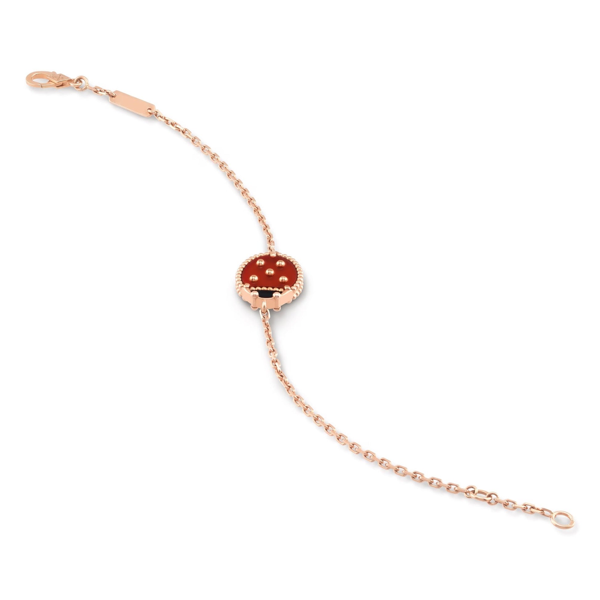 Lucky Spring bracelet, closed wings ladybug, 18K rose gold, onyx, carnelian