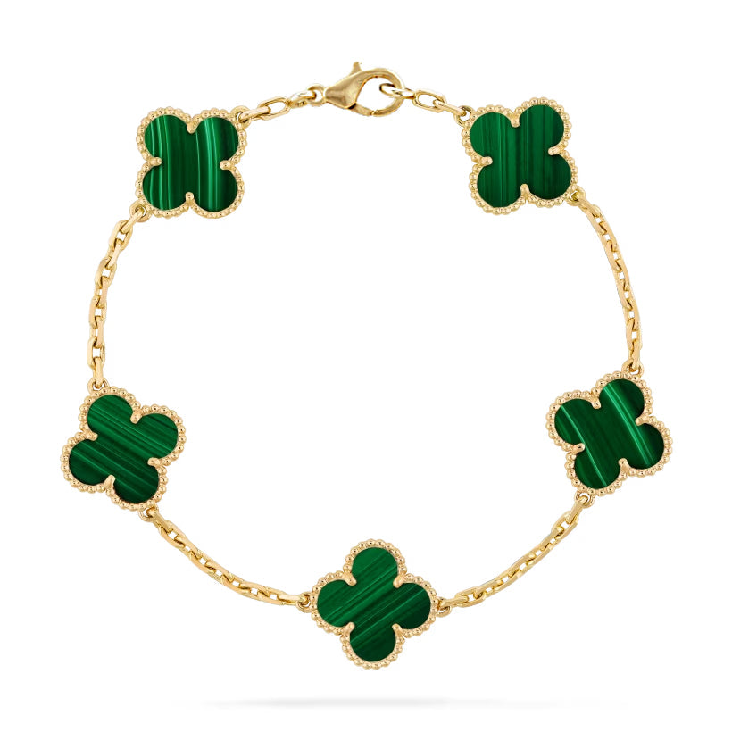 Introducing Our Malachite Five Motif Bracelet – a striking and elegant piece that captures the essence of natural bea...