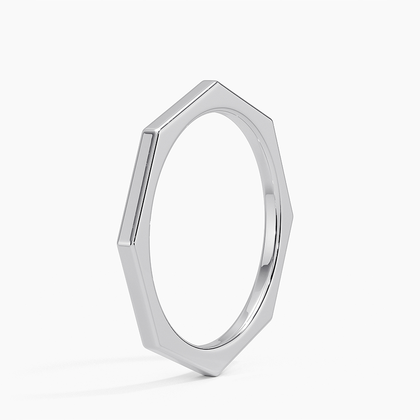 Discover a bold and edgy geometric style with this octagonal ring, showcasing eight sides of lustrous precious metal for a striking appearance.