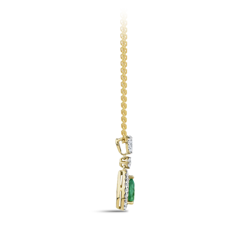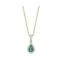 Introducing our Pear Cut Emerald and Diamond Halo Pendant – a striking union of vibrant green elegance and timeless s...