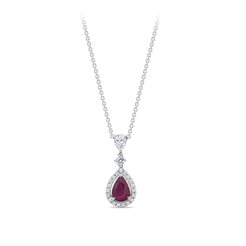 Introducing our Pear Cut Ruby and Diamond Halo Pendant – a stunning marriage of fiery elegance and timeless sparkle. ...