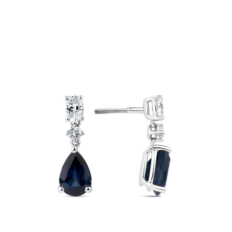 Introducing our Pear Cut Sapphire and Diamond Drop Earrings – an exquisite blend of timeless sophistication and vibra...