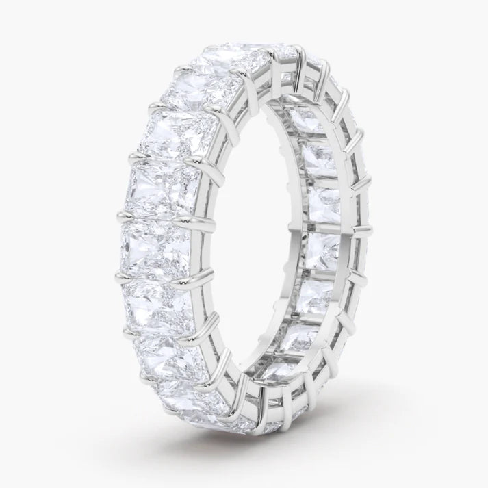 Introducing our Radiant Cut Lab Diamond Eternity Band – a timeless symbol of brilliance and ethical beauty. Expertly crafted with precision, this eternity band features a continuous row of stunning radiant-cut lab-created diamonds, creating a sophisticated and radiant design.