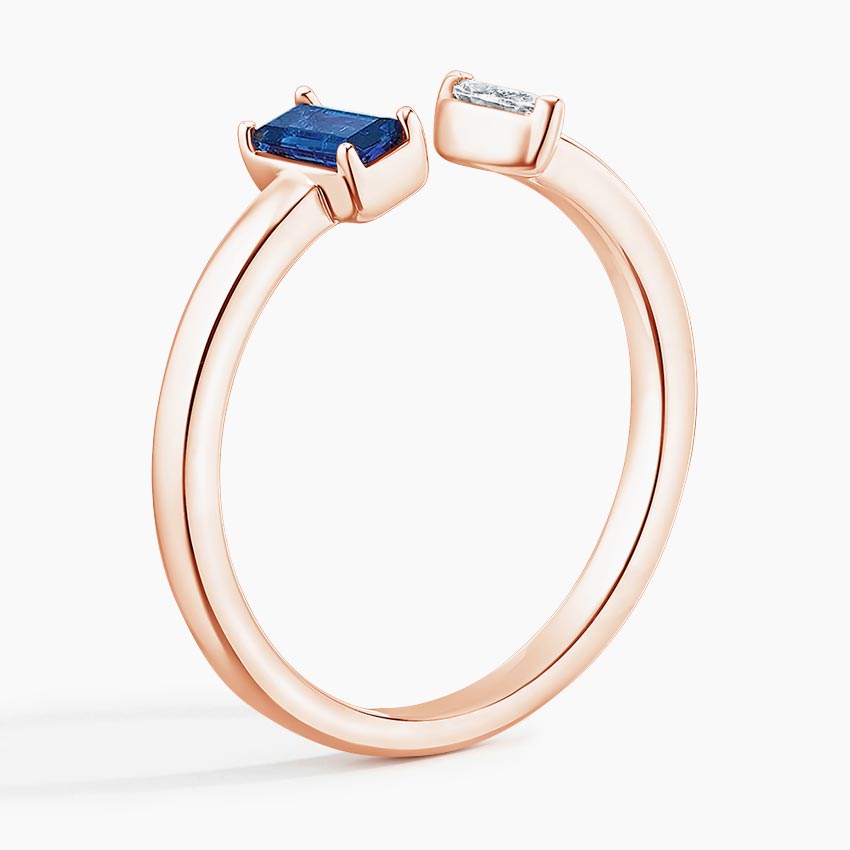 Elevate your style with the chic and timeless charm of this open ring design, featuring a sapphire baguette and a marquise diamond gracefully adorning the piece.
