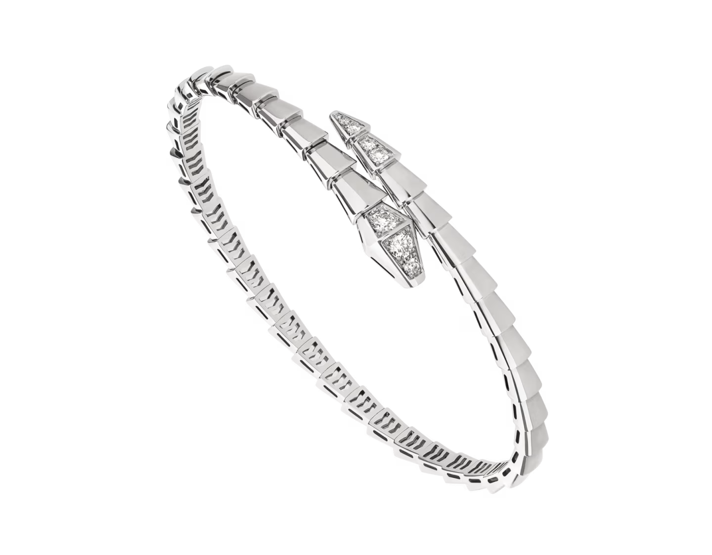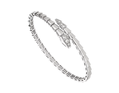 Serpenti Viper one-coil 18 kt White gold bracelet set with pavé diamonds on the head and tail