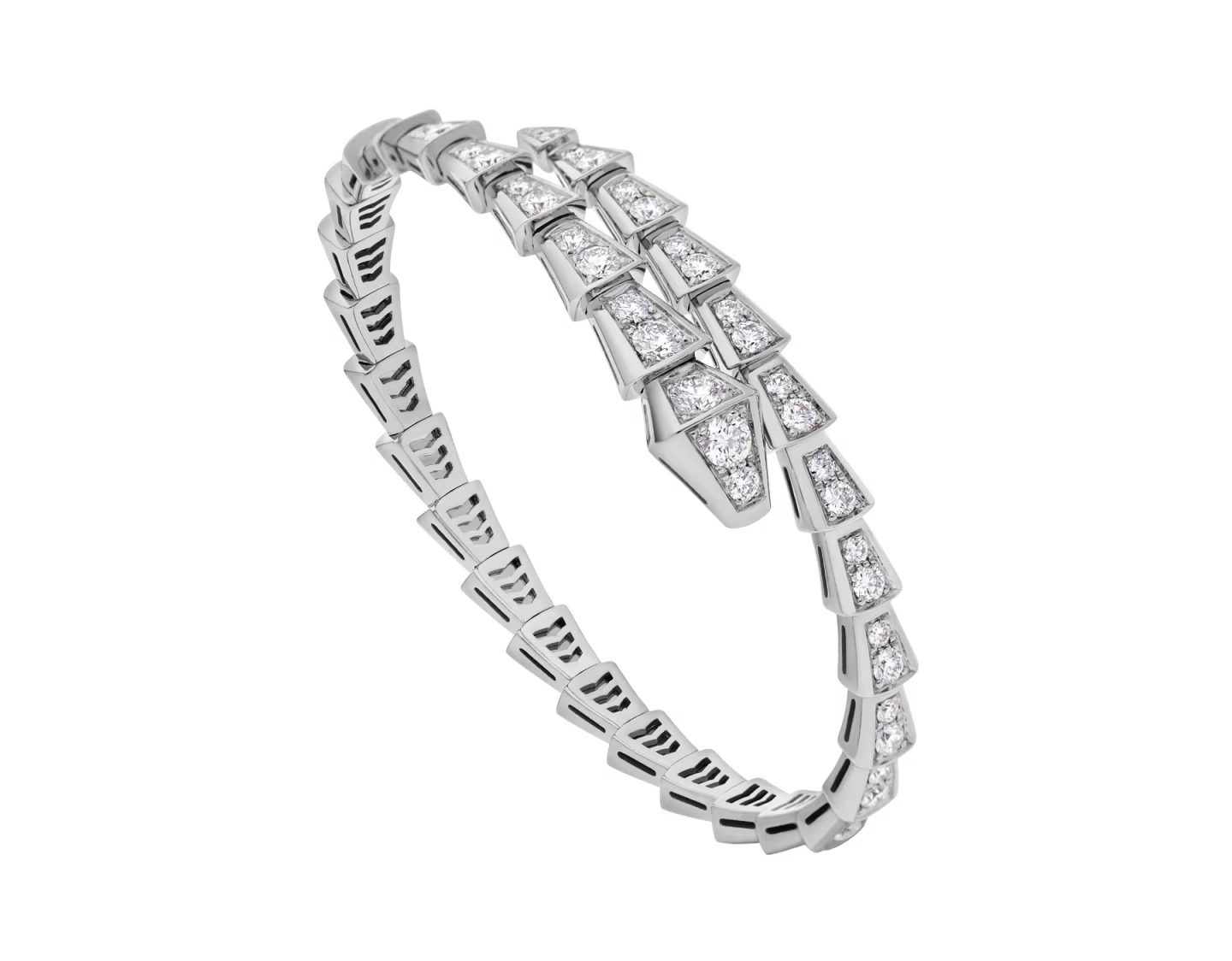 Serpenti Viper one-coil 18 kt White gold bracelet set with full pavé diamonds