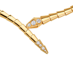 Serpenti Viper 18 kt yellow gold necklace set with pavé diamonds on the head and tail