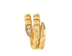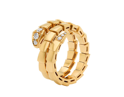 Serpenti Viper two-coil 18 kt Yellow gold ring set with pavé diamonds on the head and tail