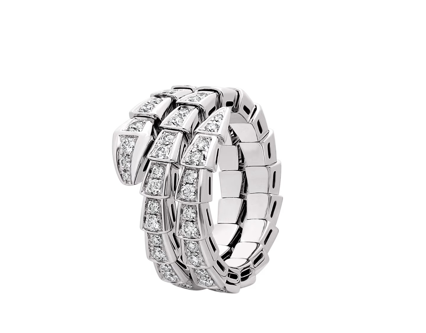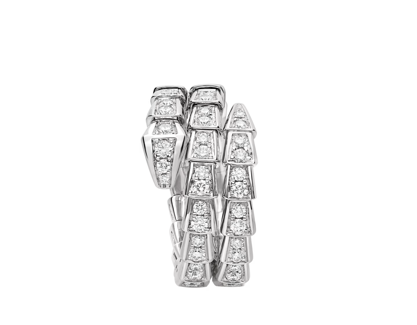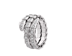 Serpenti Viper two-coil 18 kt White gold ring set with full pavé diamonds
