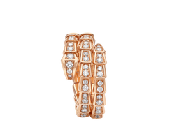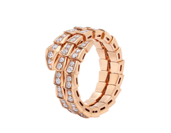 Serpenti Viper two-coil 18 kt Rose gold ring set with full pavé diamonds
