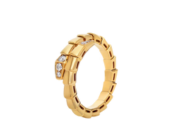 Serpenti Viper one-coil 18 kt yellow gold ring set with pavé diamonds on the head and tail