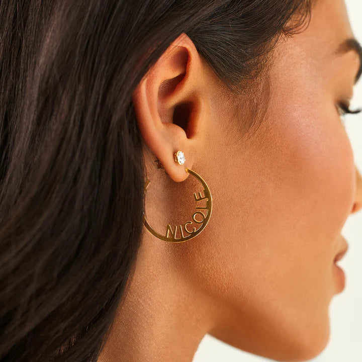 Introducing Our Small Gold Block Name Hoops – a personalized and chic piece that adds a touch of individuality to you...